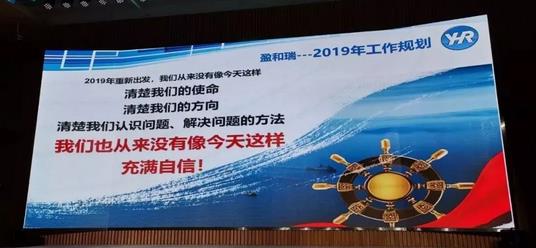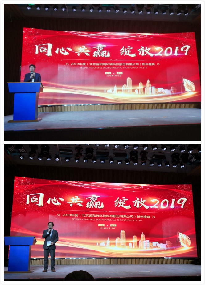 在年会现场,盈和瑞工程事业部总经理、唐山盈和瑞总经理、盈和瑞投资公司总经理的总结报告,总经理及董事长的精彩讲话,一次次将大会气氛推向高潮。他们带领大家回顾了2018年所取得的成绩,让会场的每个人都感受到这一年来盈和瑞人艰辛而又感人的成长历程;他们展望未来,许下2019年再创佳绩的诺言,让会场的每个人都信心满满,壮志凌云。