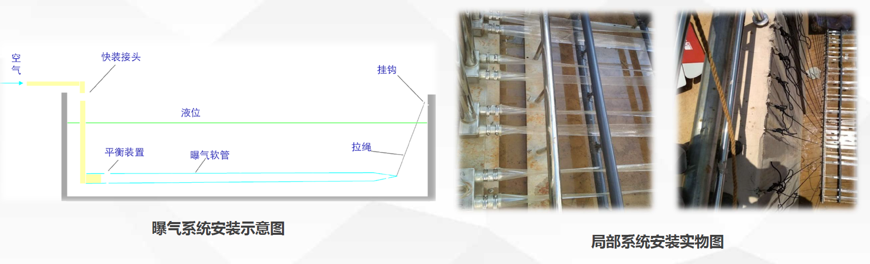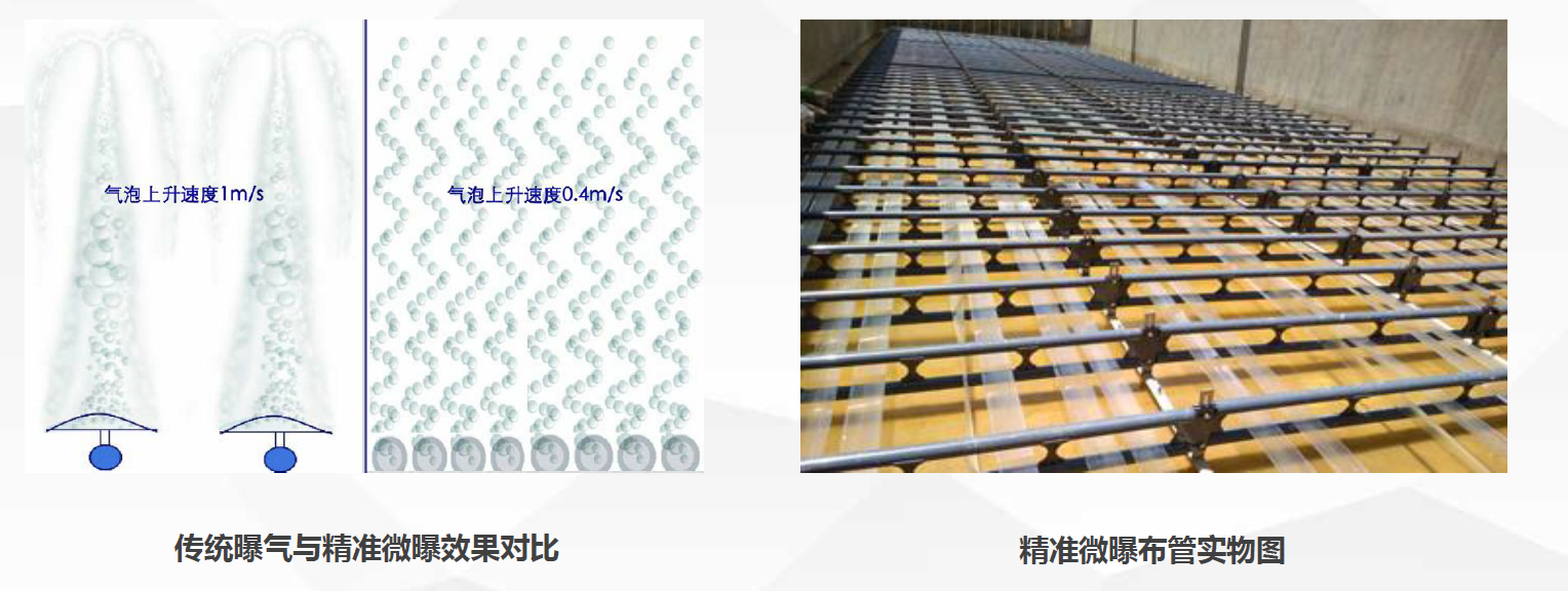 曝气系统通过装备组装,现有水厂需要提标改造时,可实现不停车改造;运营过程中可实现自动监控与在线维护及核心曝气组件的更换。
