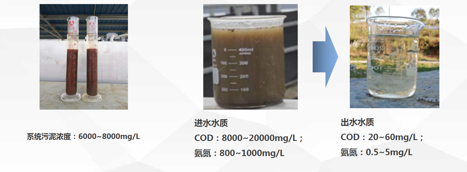 系统为相对均相体系,有利于污泥高浓度富集,浓度高达6000~8000mg/L,是传统工艺的2~3倍;同时,超高浓度污泥具有很高的污染物去除效率和负荷,COD和氨氨去除效率达到95%,甚至99%以上。