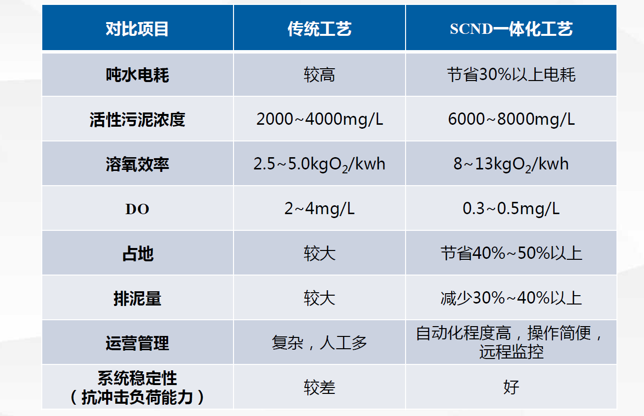 通过一体化设计,大大降低占地,新建及改造投资较小,低氧曝气和高效反应体系运营成本降低。