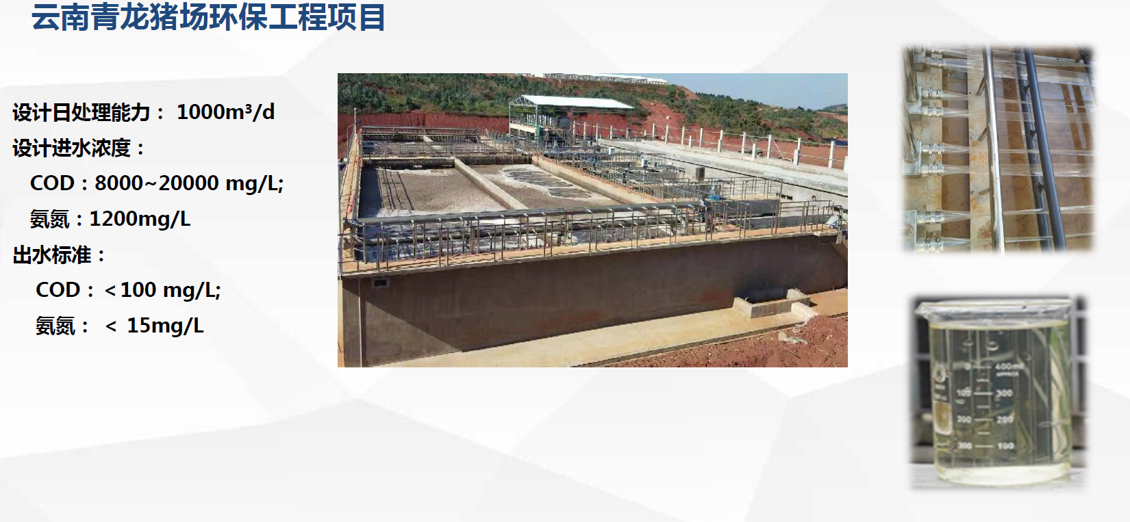 精准溶氧控制实现短程硝化反硝化,进而高效脱氨,通过合理控制C/N,氨氨去除效率高达95%以上,总氮去除效率高达90%以上。