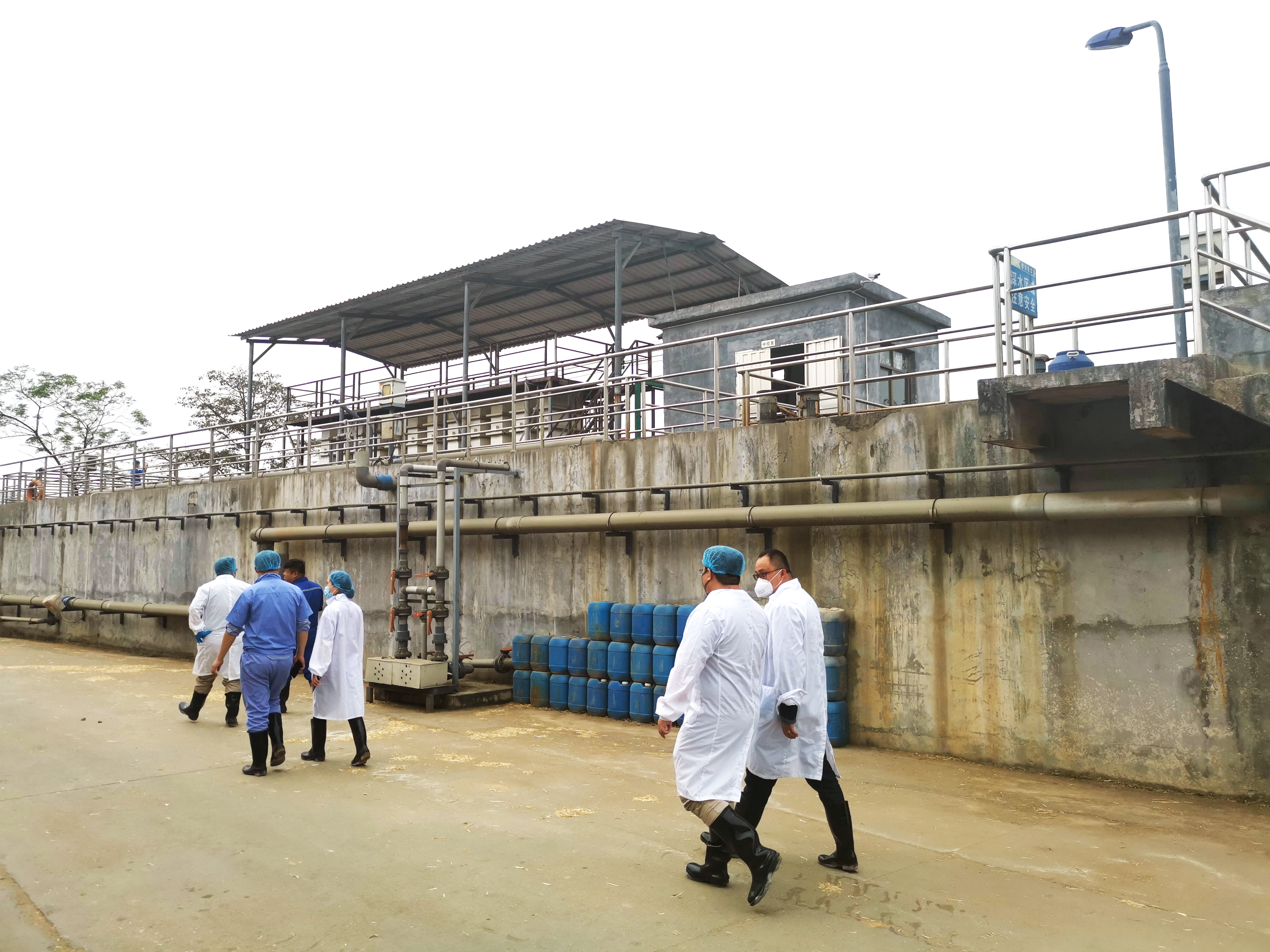 参观过程中,筠诚生物事业部带领盈和瑞事业部参观了该项目的固液分离机、USR罐、两级A/O工艺、芬顿工艺、终沉池以及消毒池等生产设备,同时,双方就该项目污水达标排放的工艺设计方案和运行进行了深入的交流和探讨。