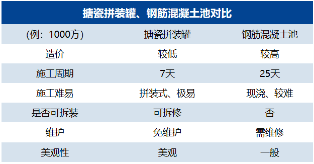 相对于其他罐体(比如钢筋混凝土池),搪瓷拼装罐实现了材料、防腐技术和安装方式的突破创新,是一种国际先进的制罐技术。
