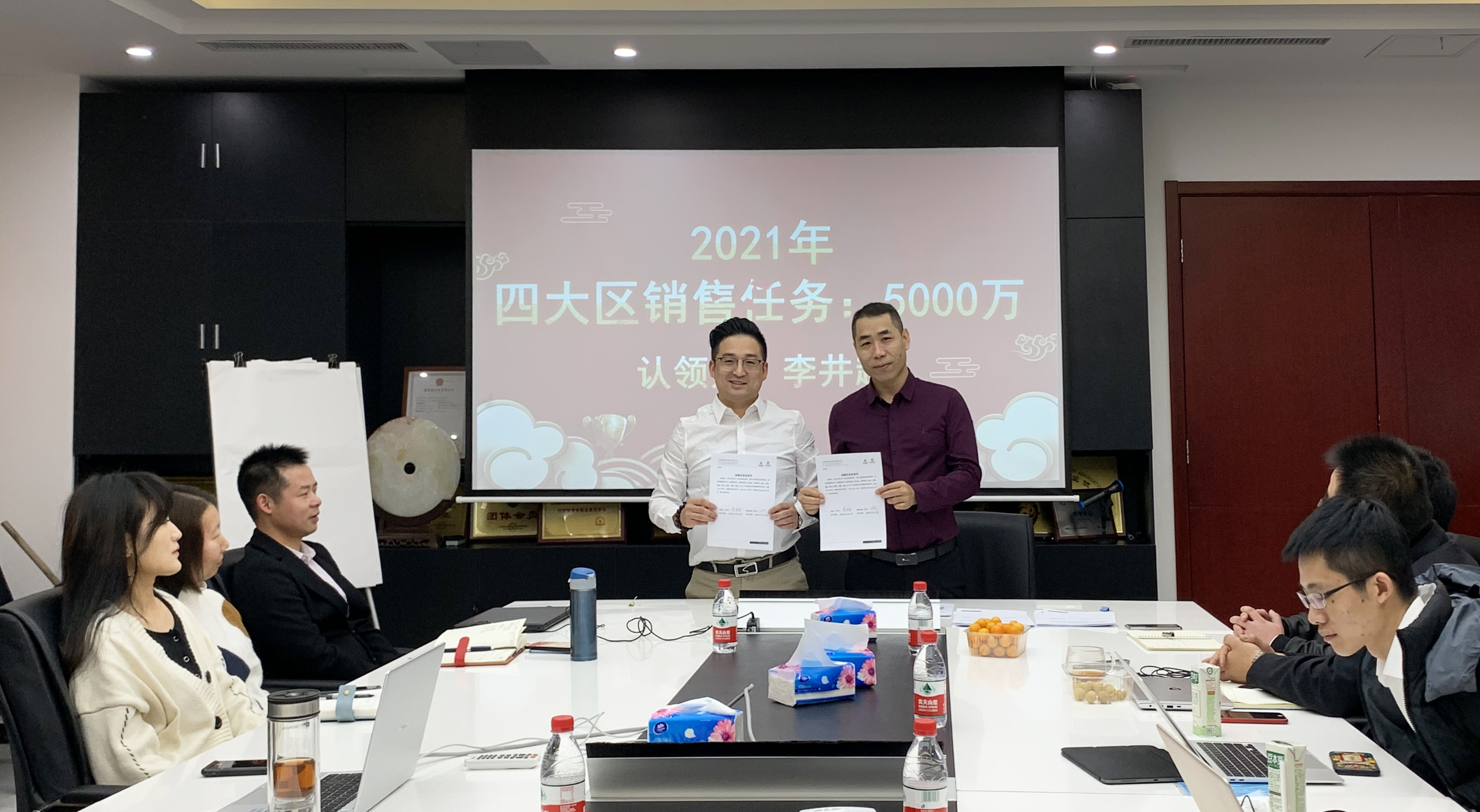 2021年,盈和瑞环境装备公司各大区营销经理再次不畏艰辛、迎难而上,信心满满的与公司签订任务书,携手冲击3亿目标销售合同任务以及2.0626亿目标收款任务。这也标志着盈和瑞装备公司2021年的征程已提前拉开帷幕。