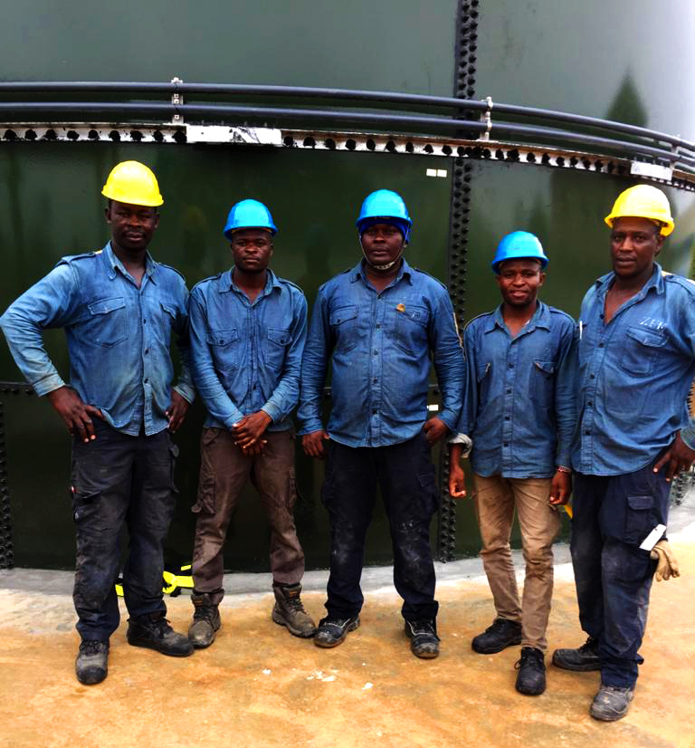 本着中国传统文化中“授人以鱼,不如授人以渔”的思想,盈和瑞环境通过视频培训教材,在线直播指导等多种方式,为非洲地区项目施工提供罐体安装技术系统培训,培养出获得我公司认证的罐体安装工程师,为当地项目提供安装服务。系统化的技术培训不仅摆脱了疫情下我国项目经理无法出境的限制,也是盈和瑞环境海外布局的重要一环。