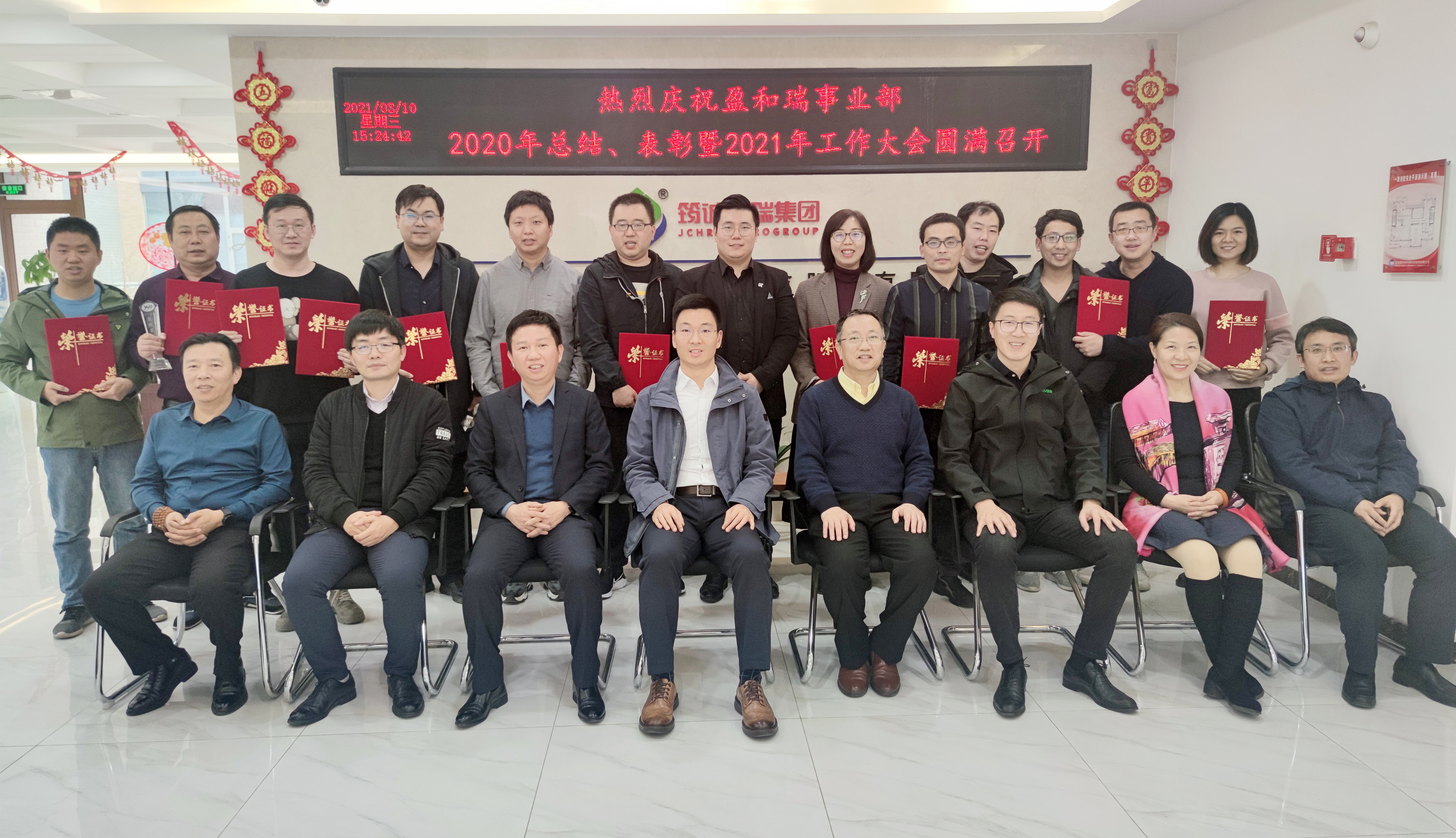 2021年3月10日下午,筠诚和瑞集团盈和瑞事业部2020年工作总结、表彰暨2021年工作大会在公司一层会议室顺利召开。筠诚和瑞集团董事长兼总裁范卫朝先生、集团副董事长李旭源先生、集团副总裁兼盈和瑞事业部总经理周建华先生、集团财务总监宁克春以及盈和瑞事业部管理层、获奖员工代表参加了此次会议。
